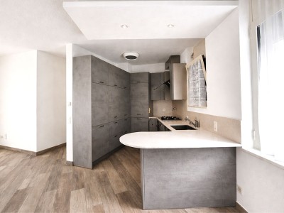 Der großzügige und helle Wohnbereich beherbergt ein Wohnzimmer mit einer modernen und gut organisierten Küche, perfekt für gesellige Momente und für diejenigen, die funktionale und einladende Umgebungen lieben. Vom Wohnzimmer aus gelangt man auf den Balkon, einen angenehmen Außenbereich, der einen eindrucksvollen Blick auf den Luganer See und die umliegenden Berge bietet, ideal zum Entspannen oder zum Essen im Freien.