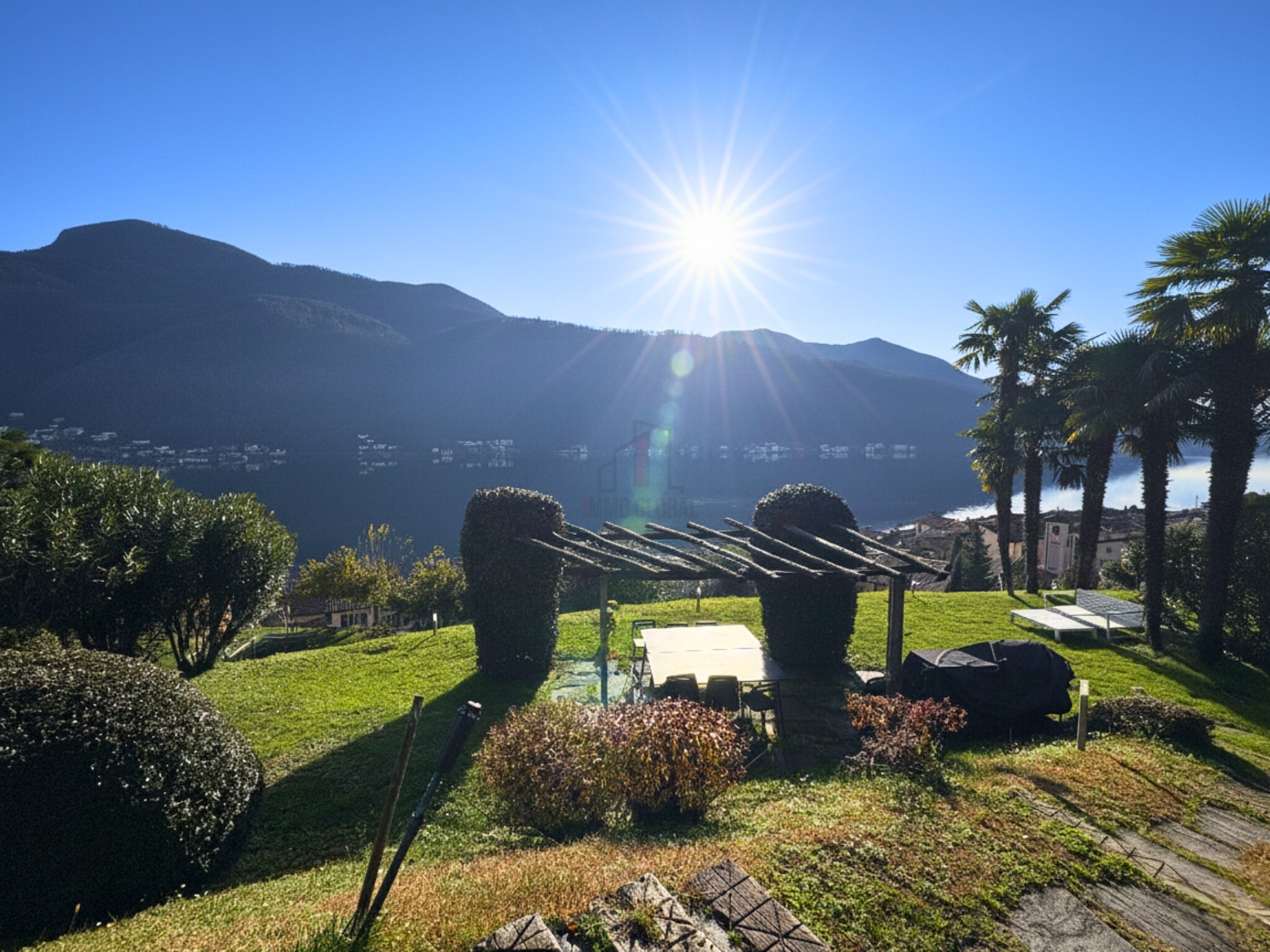 Das Umfeld ist vornehm und exklusiv, besteht aus nur zehn Wohneinheiten, größtenteils Zweitwohnsitze. Den Bewohnern steht ein großer gemeinschaftlicher Panoramagarten zur Verfügung, ausgestattet mit einem Steintisch und einem Grill, ideal für gesellige Momente in völliger Ruhe.